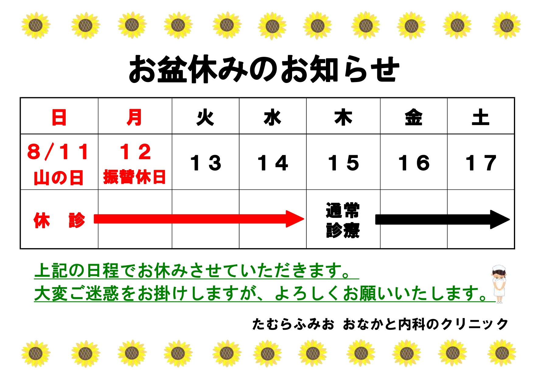 お盆休みのお知らせ