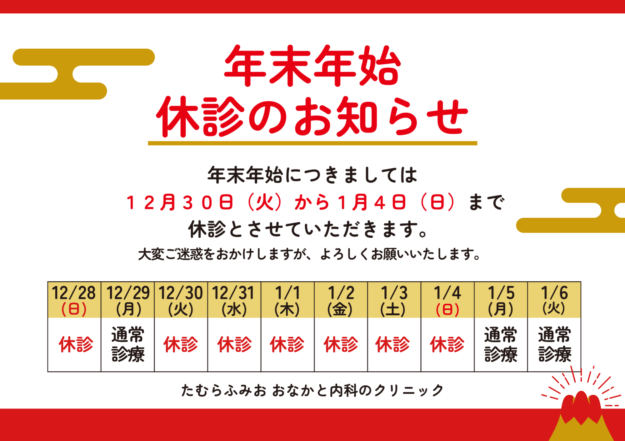 年末年始休診のお知らせ